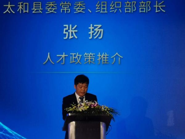县委常委、组织部长、统战部长张扬在现场作太和县人才政策推介。通过“得天时、拥地利、逢人和”三个方面,解读了太和的战略定位、区位优势、政策红利,把太和真心招引贤才、诚心集聚贤才、细心服务贤才的满腔热忱传递出去。真诚期望八方有志之士来太,深度扎根,燃情创业。