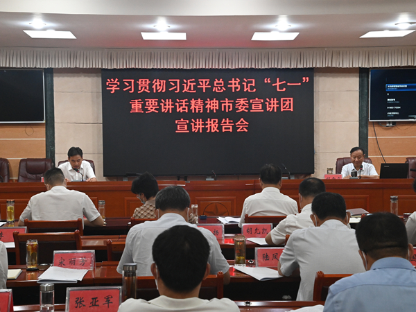 8月4日下午,市委宣讲团成员胡雷霆来太和宣讲习近平总书记“七一”重要讲话精神。县委副书记谢金明主持宣讲报告会。县委常委;县人大常委、县政府、县政协负责同志;县法院院长、县检察院检察长,县人大办公室主任、县政府办公室主任、县政协秘书长;各乡镇(开发区)党(工)委书记参加报告会。