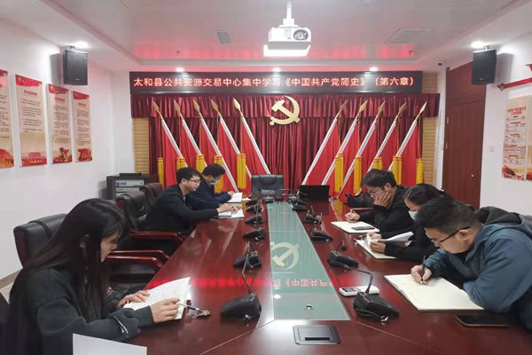 为推动党史学习教育扎实开展,2021年11月1日,太和县公共资源交易中心召开学习会,集中学习了《中国共产党简史》,交易中心工作人员参加会议。