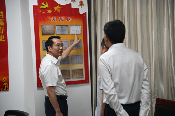 6月17日,省委党史学习教育第六巡回指导组组长黄玉明一行在市委宣传部副部长、市社科联主席、市学教办信息材料组组长燕少红的陪同下,深入太和县调研指导党史学习教育工作。县委副书记谢金明,县委宣传部部长张文静、副部长葛保富,县档案馆馆长邹德琼参加了调研指导。