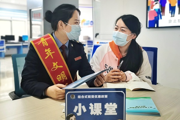太和县税务局共在9个办税服务厅设置“小课堂”,各办税服务厅业务骨干在小课堂上为纳税人缴费人讲解增值税留抵退税、“六税两费”等组合式税费支持政策,并与纳税人缴费人进行交流互动,为纳税人缴费人解答各类热点疑点问题。开展一对一讲解落实新的组合式税费优惠政策,帮助纳税人缴费人听得懂、看得明、记得牢及时享受政策红利。