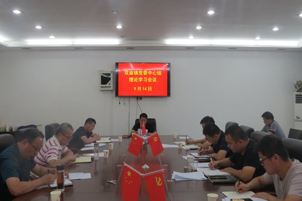 9月14日下午,双庙镇在小会议室召开党委中心组理论学习会议,镇党政班子成员和各村工委书记参加了会议。