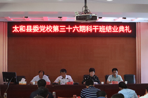 6月2日,太和县委党校举行了第三十六期科干班结业典礼。县委常委、组织部长刘大伟出席典礼并作重要讲话,县委党校常务副校长吴岩主持结业典礼,县委党校副校长贾成礼、县委组织部干部教育室主任张鸿申出席。
