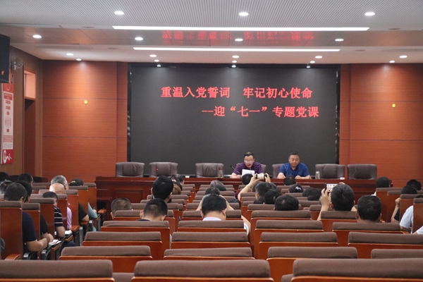 为庆祝建党99周年,6月29日,县人大常委会副主任、城关镇党委书记赵国法以“重温入党誓词,牢记初心使命”为题为全镇党员干部上了一堂专题党课。