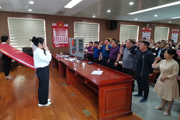 最后,在镇纪委书记杨全志的带领下,全体党员重温入党誓词。(城关镇)