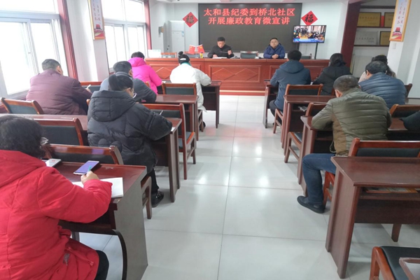 新年刚开始,城关镇桥北社区在谋划2021年“9+N”项目建设模块时,结合联建单位县纪委监委工作特点,把“廉政教育微宣讲”列为2021年度联建项目。县纪委监委在收到“共建协议”后高度重视,积极组建宣讲小分队,于2021年1月26日到桥北社区开展廉政教育微宣讲,宣讲小分队围绕“中华人民共和国公职人员政务处分法”、“违法行为及其适用的政务处分”进行宣讲,以鲜活的案例开展警示教育,提醒社区干部要实事求是、廉洁自律。社区干部纷纷表示受到了精神洗礼,在今后的工作中要密切联系群众,严格贯彻中央八项规定内容,以身作则,率先垂范,尊重纪律、敬畏纪律、高度自律,踏踏实实干事,清清白白做人。