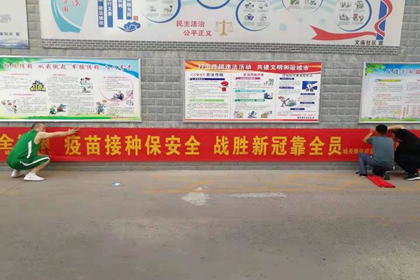 加强引导,营造氛围。城区主要道路悬挂横幅宣传标语,出动疫情防控和新冠疫苗接种工作宣传车,利用多种场所电子屏,强化正面宣传引导,在全镇大力营造人人接种疫苗的氛围。