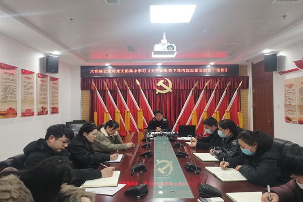 为严肃党内政治生活,进一步加强党的建设。2022年2月21日,中共太和县公管局党支部召开学习会,集中学习了《关于新形势下党内政治生活的若干准则》。