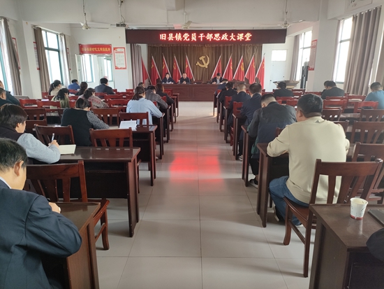 近日,旧县镇在四楼大会议室开展思政大课堂活动。镇全体干部,各村(社区)第一书记、书记、主任及派出所、中心校、卫生院、市监所负责人参会会议,会议由该镇人大主席李培付主持。