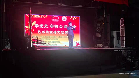 芳菲四月,春回大地。为庆祝中国共产党成立100周年,用艺术化的形式推动习近平新时代中国特色社会主义思想深入人心、落地生根,引导广大党员干部、群众学党史、知党情、明党恩、听党话、跟党走,4月29日,太和县党史学习教育首轮艺术化宣讲活动走进旧县镇。