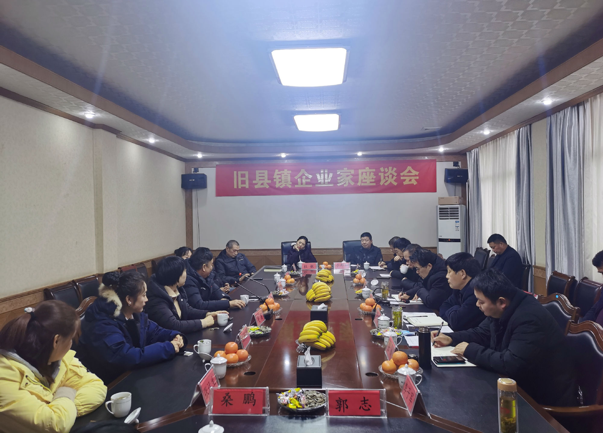近日,旧县镇召开企业家座谈会,会议由县人大常委会副主任、镇党委书记唐永利主持,镇党委副书记、镇长付斌,镇人大主席李培付,镇工作人员,旧县镇企业家代表参加。