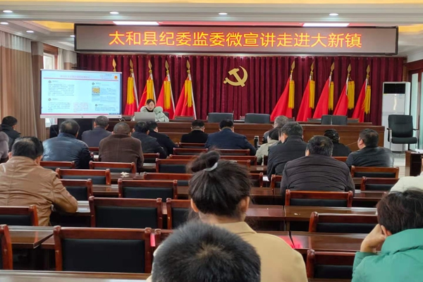为深入学习贯彻习近平总书记考察安徽重要讲话指示精神,推进全面从严治党主体责任落实,促进公职人员依法履职、廉洁从政。近日,县纪委监委“纪法微宣讲”走进大新镇,镇机关全体干部、村党总支书记、纪检委员、监察联络员聆听了此次宣讲。