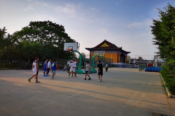 与移风易俗相结合。每天晚上七点半,大新镇禅堂寺旁边的文化广场上就会响起熟悉的广场舞旋律,周边的村民正在踏歌起舞,董庙村的篮球场上一群小伙子也在挥汗如雨。镇、村干部因势利导,以广场舞、篮球为载体,丰富了村民的精神文化生活,培育了文明、健康、和谐的乡村新风气。
