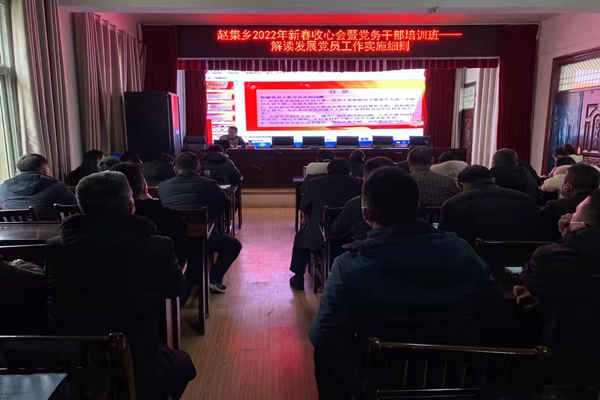 为使全乡干部尽快进入工作状态,确保年度工作“开门红”,赵集乡于2022年2月7日-8日举办2022年新春收心会暨党务干部培训班,参与培训人员为乡全体工作人员、各村全体“两委”成员。