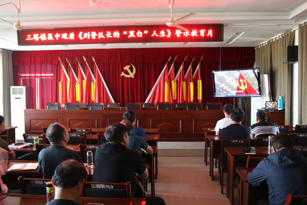 三塔镇集中观看《刑警队长的“黑白人生”》警示教育片