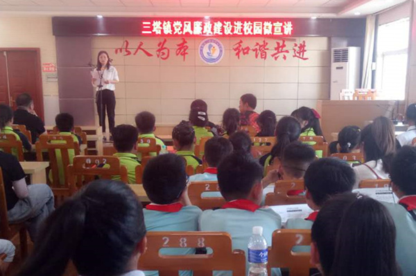 为深化党风廉政建设,推进廉政文化各领域覆盖,三塔镇启动2020年廉政文化进校园活动,6月29日,三塔镇纪委深入到三塔镇中心学校开展“党风廉政建设进校园”主题微宣讲,三塔镇中心校骨干教职工、部分学生代表参加宣讲。