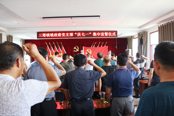 重温入党誓词,集中宣誓表初心。7月1日早上,由三塔镇党委书记张钊领誓,所有党员干部面向党旗宣誓,铮铮誓言铿锵回响在会议室上方,朝阳透过窗户将明亮的光撒在党旗上。“听党话,跟党走,忠于祖国,忠于人民,不负党恩,砥砺前行!”一名三塔镇退役军人坚定说到。