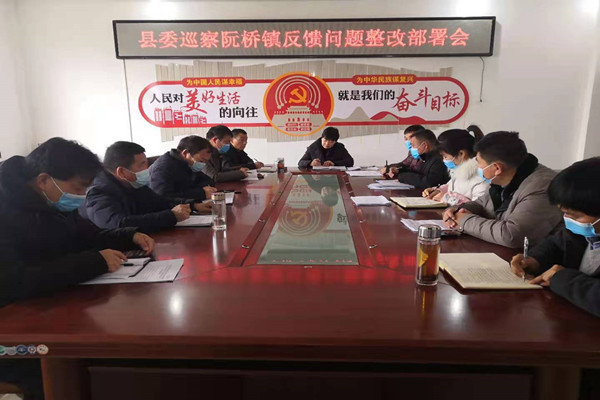 为做好县委巡察反馈问题整改工作,近日,阮桥镇召开县委巡察阮桥镇反馈问题整改部署会,镇班子成员参加,会议由镇党委书记王芳主持。
