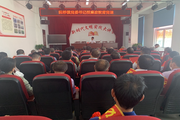 为庆祝中国共产党成立100周年,进一步提高党员的党性修养,7月1日,在镇党委党校,阮桥镇党委书记李志授廉政党课,镇全体干部、村书记、主任、镇直单位负责人、受表彰的优秀共产党员、优秀党务工作者、先进基层党组织代表、光荣在党50年的老党员代表等人参加。