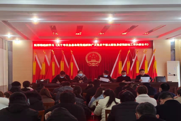 会上,镇组织委员马丽英领学了《关于号召全县各级党组织和广大党员干部立即投身疫情防控工作的倡议书》内容,同时,号召党员干部主动担当、认清形势,积极参与当前疫情防控工作,以实际行动,带动群众守住来之不易的防控成果。