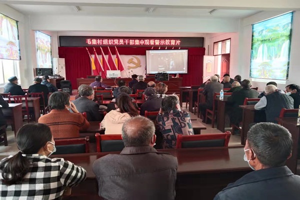 为筑牢党员干部廉洁自律思想防线,洪山镇毛集村组织全体党员干部集中观看了警示教育片。