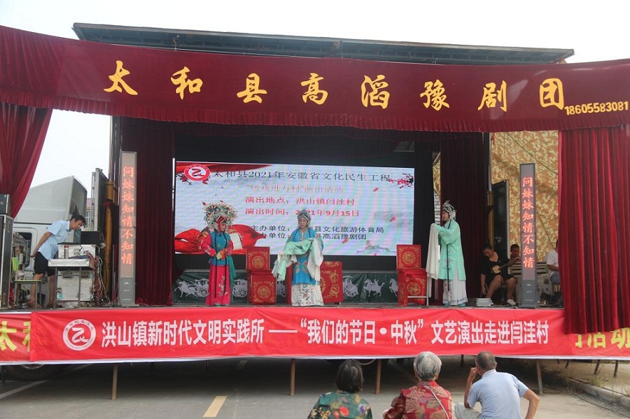 在中秋、国庆双节来临之际,为弘扬中华民族的优秀传统文化,丰富群众精神文化生活,进一步助力乡村振兴,洪山镇新时代文明实践所联合太和县高滔豫剧团开展“我们的节日·中秋”文艺演出进乡村活动,为群众送上一场精彩纷呈的文化盛宴。